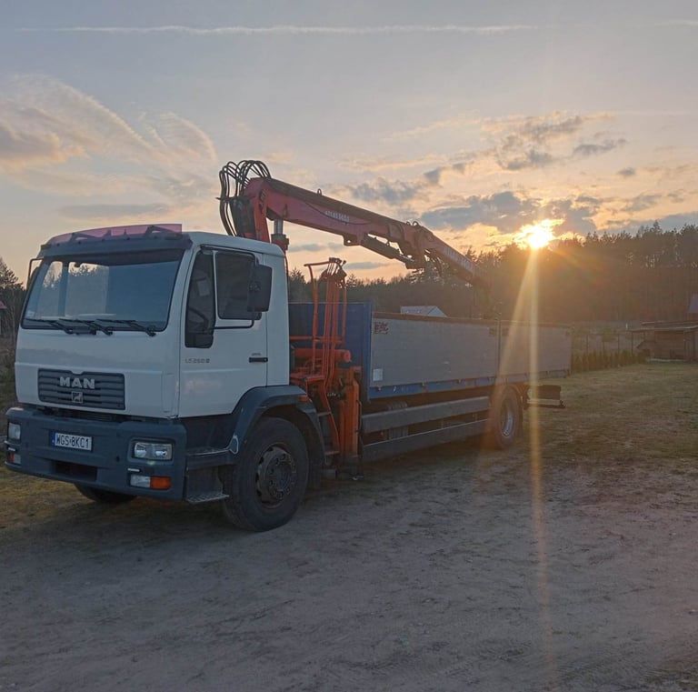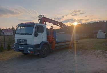 Oferujemy transport materiałów budowlanych, palet oraz maszyn przy użyciu pojazdu z HDS.